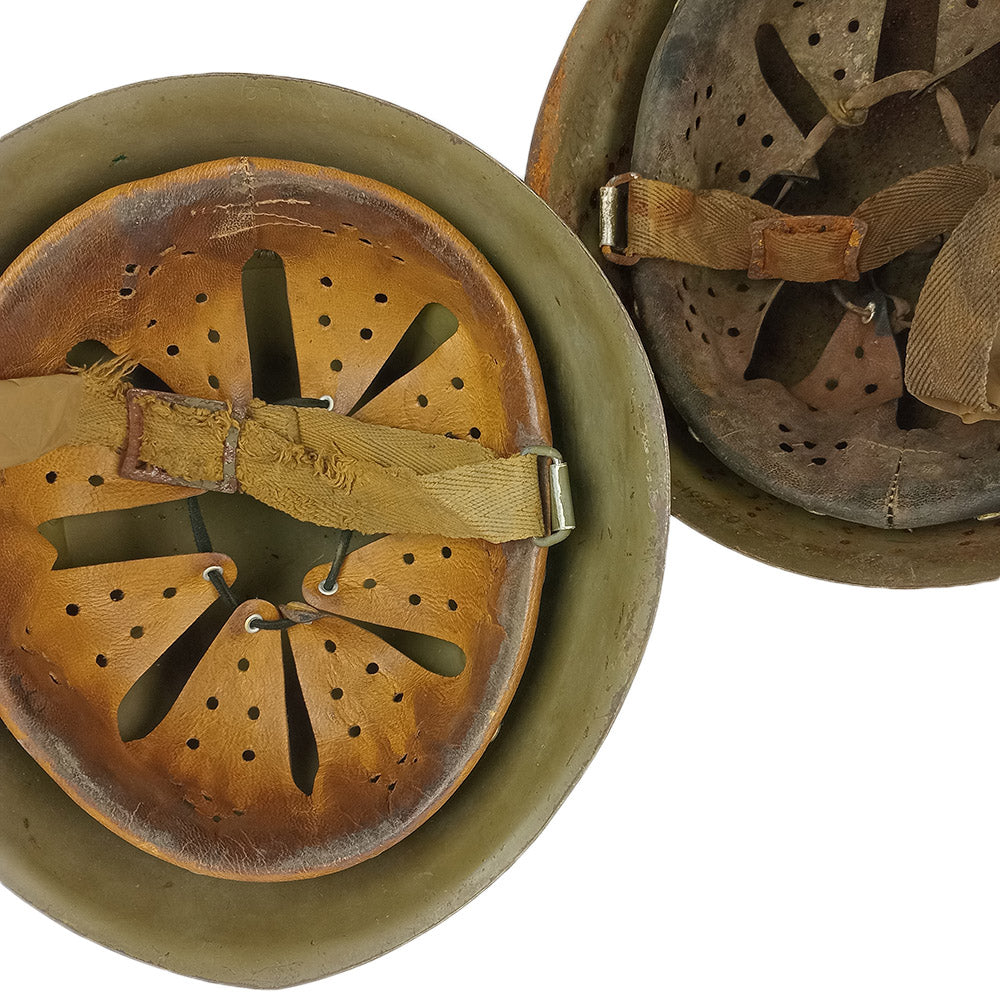 Although there are no markings, we believe these will be dated from at least the 1960's on wards as these helmets come with an adjustable canvas chin strap and leather inner liner. The steel shell has ventilation holes to help release any built up moisture in the helmet.