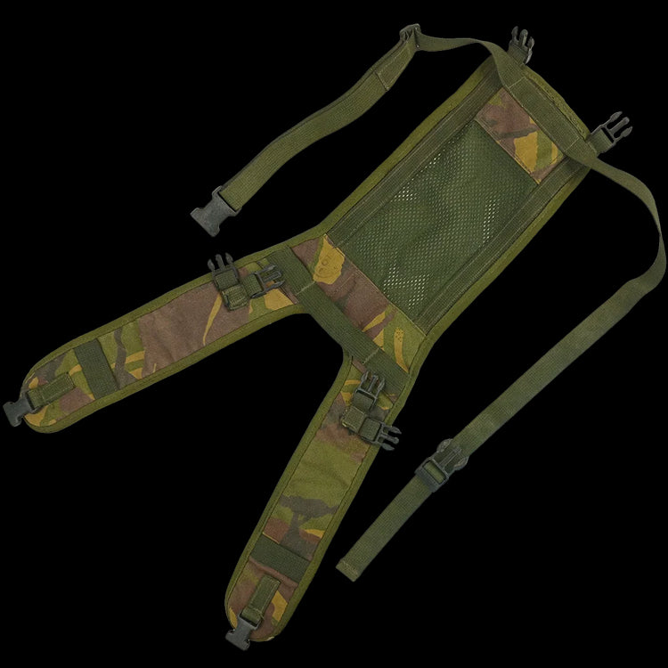 This yoke is designed to clip to British PLCE Bergen side pouches and make a smaller bag. Lightly padded shoulders and a mesh back panel provide comfort to the user. Attach one or both side pouches, depending on how much gear you need on recon!