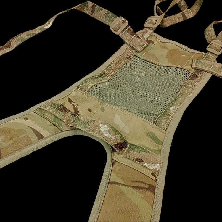 Keep that belt up and take some weight off your hips with this British MTP yoke. The last image shows the variation in wear/markings we have in our latest batch. Long adjustable strapping attaches to the belt and helps distribute that weight. Lightly padded shoulders and a mesh back panel provide comfort to the user. If you've got a belt based system (especially PLCE set up) this is the one for you!