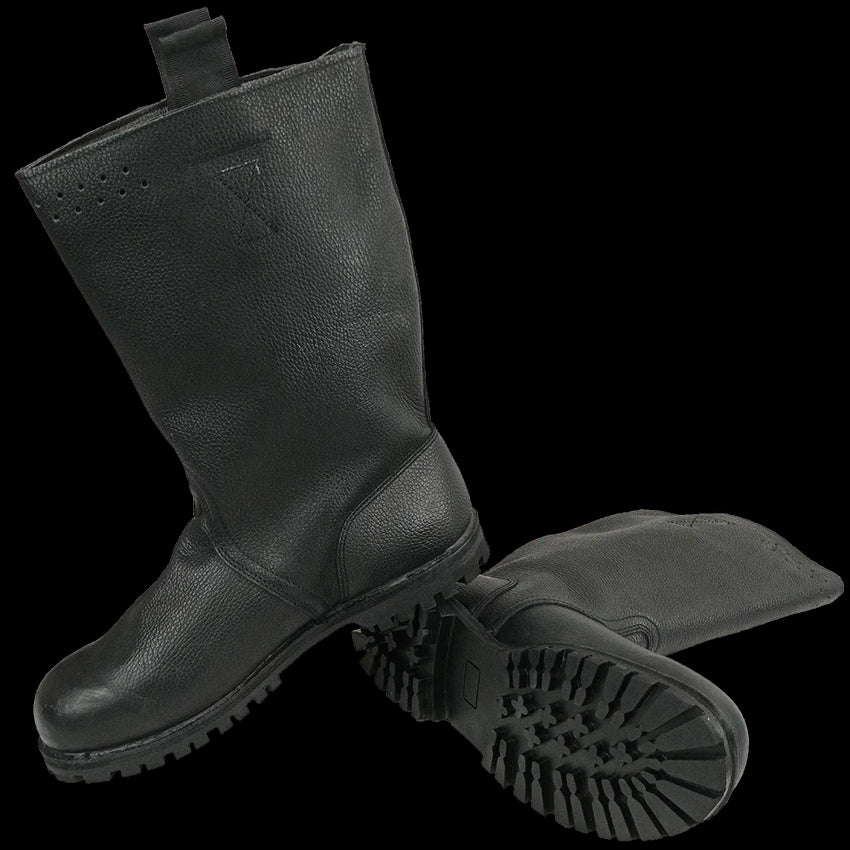 German Navy jackboots, with a new and different sole! These sturdy boots appear to have a new sole, but the boot exterior is also very nice - nearly new with just marks from storage. So why the different sole? Was there a Navy boot sole shortage? Was there a need for this particular tread? We can't tell, but they are nice hardy boots nonetheless, just fitted with a more casual sole.