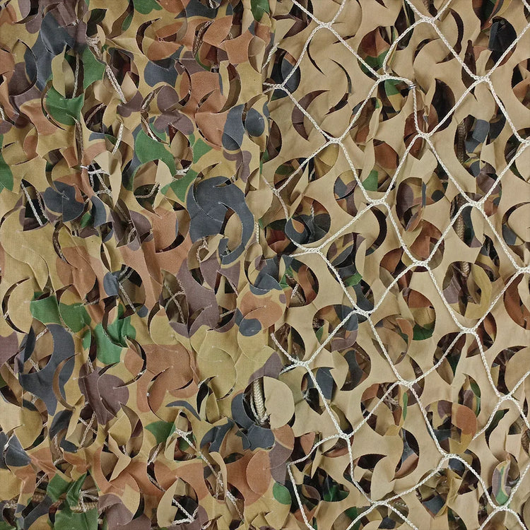 Ultra-Light heavy-Duty Rip-Stop camouflage 'premium' grade netting. This lightweight, strong, durable netting is additionally treated to provide a non-glare cover in the field while remaining quiet and rustle-free. They also sport a nylon mesh backing with loops on the corners. These can be used in combination with tent pegs (not included) to anchor the net down securely or quickly attach to branches etc when in a hurry. With Auscam-inspired camo on one side and a khaki tone on the reverse, these are ideal for camouflaging in more arid environments. This camo netting is for outside use only and is not fire rated.