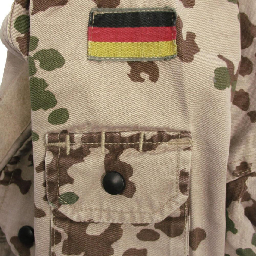 The German Army's choice of camouflage in arid/desert regions is the 3 colour Tropentarn pattern. The official name is drei Farben Tarndruck der Bundeswehr (three color camouflage of the Bundeswehr). Based on the established Flecktarn pattern, the Tropentarn is another popular camouflage pattern from the German army. This field shirt is comfortable, hardwearing and practical. Underarm ventilation is a highlight of these shirts and proves an ideal choice of battle attire for high humidity/warm climates.