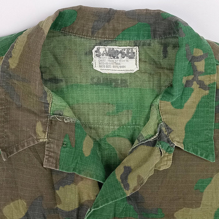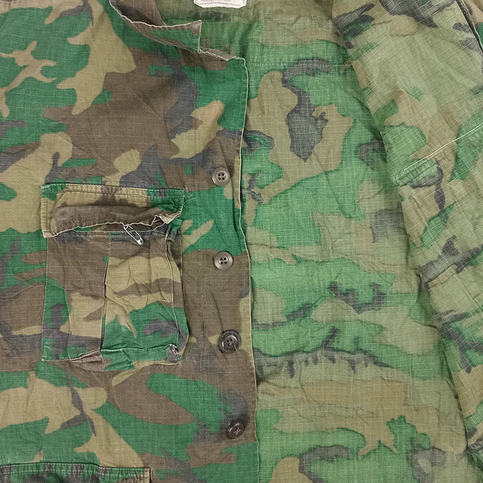 United States Marine Corps straight pocket RDF ERDL camouflage shirt, with EGA on top left pocket. Contract appears to read 1977. Gorgeous print saturation to inner fabric.