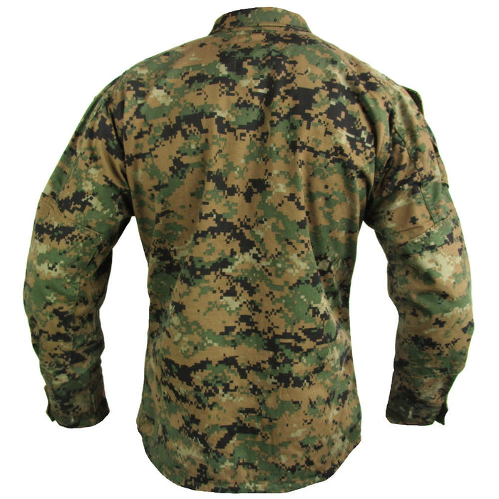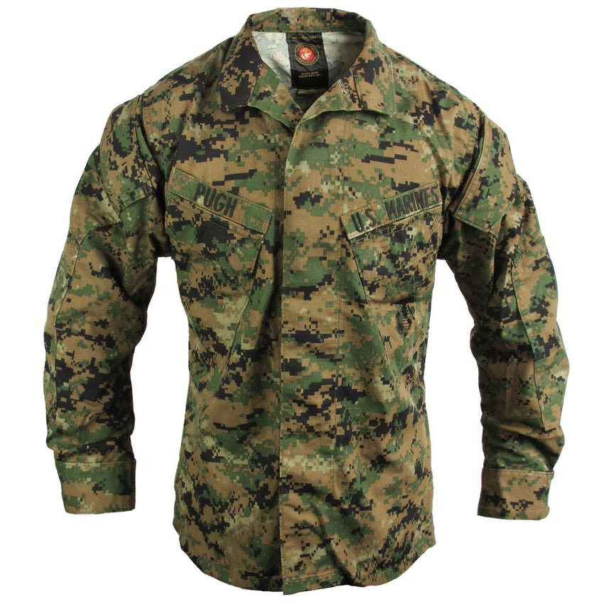 This USMC MARPAT Woodland Womans Shirt is based on the official CADPAT (Canadian Disruptive Pattern) uniform and is currently issued to USMC (United States Marine Corps). These are in a womans cut, women's uniforms are designed with a more tailored fit to better suit the female body shape. Some shirts do not have the The "U.S. MARINES" lettering or embroidered USMC emblem (pictured).