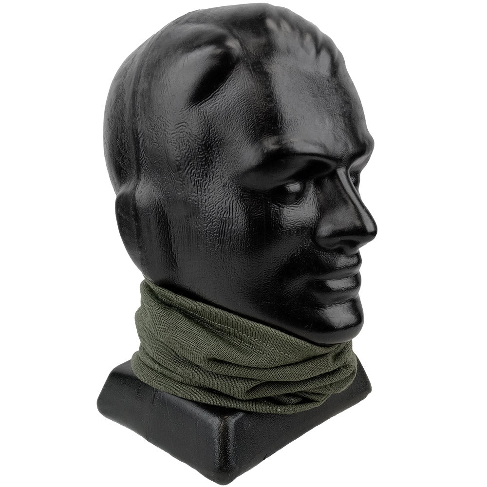 East German madness continues with this excellent quality wool tube scarf, or headover. A handy and warm item in the shape of a loop of wool that can be worn like a scarf, face-mask or bandanna among other configurations. Being wool, it provides excellent insulating properties and will perform better in the wet than cotton scarves and headovers. Great for sneaking in some East German kit or another perfect piece of surplus for frosty mornings on the way to work or cover your chin and nose while skiing.