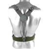 These East German suspenders are designed to attach to a webbing belt (not included) and help keep your pouches and weight distribution in order. They use an adjustable hook system that stays secured to your gear and can be quickly released. Due to their length, your belt and trousers will ride higher (as displayed by our silver friend), this keeps your trousers off of the muddy ground.