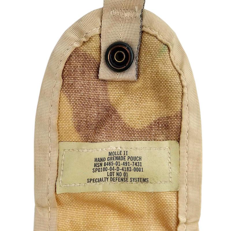These 3 colour desert camouflage grenade pouches are genuine surplus from the US Army. Manufactured by Specialty Defense using tough Cordura nylon. Designed to hold a fragmentation grenade on a MOLLE combat vest and other MOLLE compatible gear.