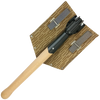 Content: Wood & metal shovel, fabric cover with leather inner patches, nylon strapping and metal rivets/fasteners