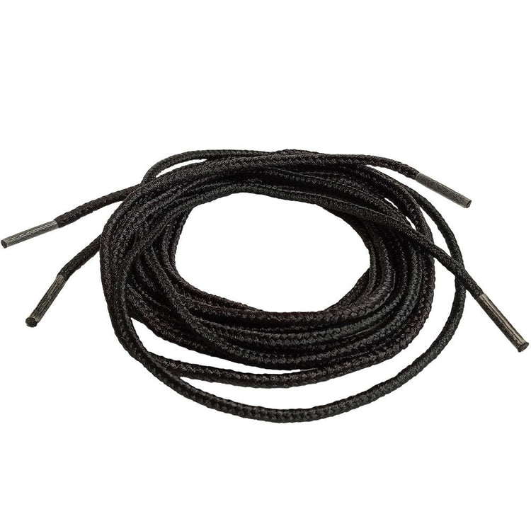 Genuine US Army issue boot laces. They are a rounded cord style with heat tipped ends. At 3mm wide, 152cm / 60" long, these laces should fit up to a 7-8 eyelet pair of boots, secured.