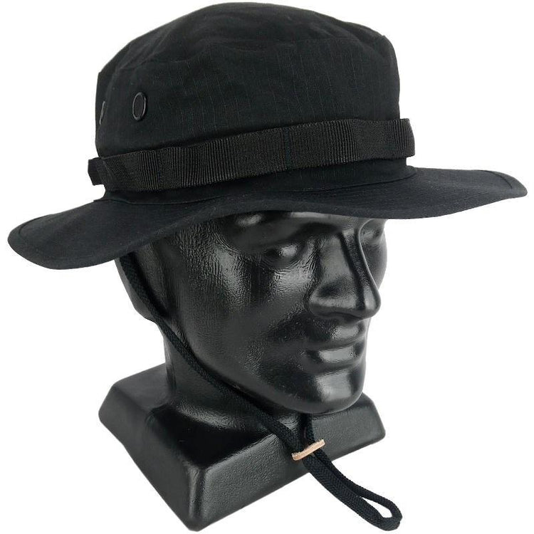 Boonie hats are an excellent form of protection against the sun and some light rain. The original boonie hats were issued by the U.S. Army for protection against the elements as well as concealing the soldiers' outline. This boonie hat comes in a black colour which is perfect for casual use.