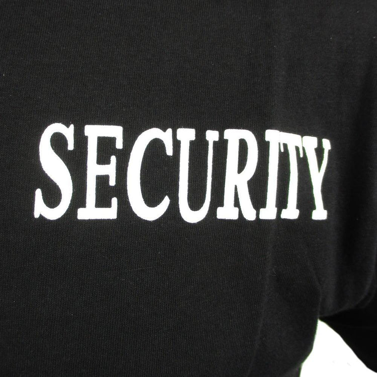 Hosting an event that requires security? Or need a uniform for a film or photo shoot? Maybe you just want to look like a tough guy out on the street. Whatever it is, this black security t-shirt has you covered. Featuring the word “SECURITY” in white across the chest and back. The 100% cotton construction is soft and comfortable for long days and nights on the job.