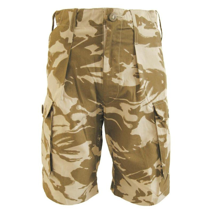 Keep cool and stick out this summer with these genuine British Army 95 desert camouflage shorts. The pants main feature apart from their striking camouflage is the two main cargo pockets. They can fit anything from small drinking bottles to wallets and be buttoned securely. Like any decent pair of shorts they have two front pockets and a buttoned rear pocket as well. Donning these are easy - they come equipped with a zipped fly, very large belt loops and a draw cord.