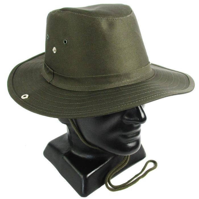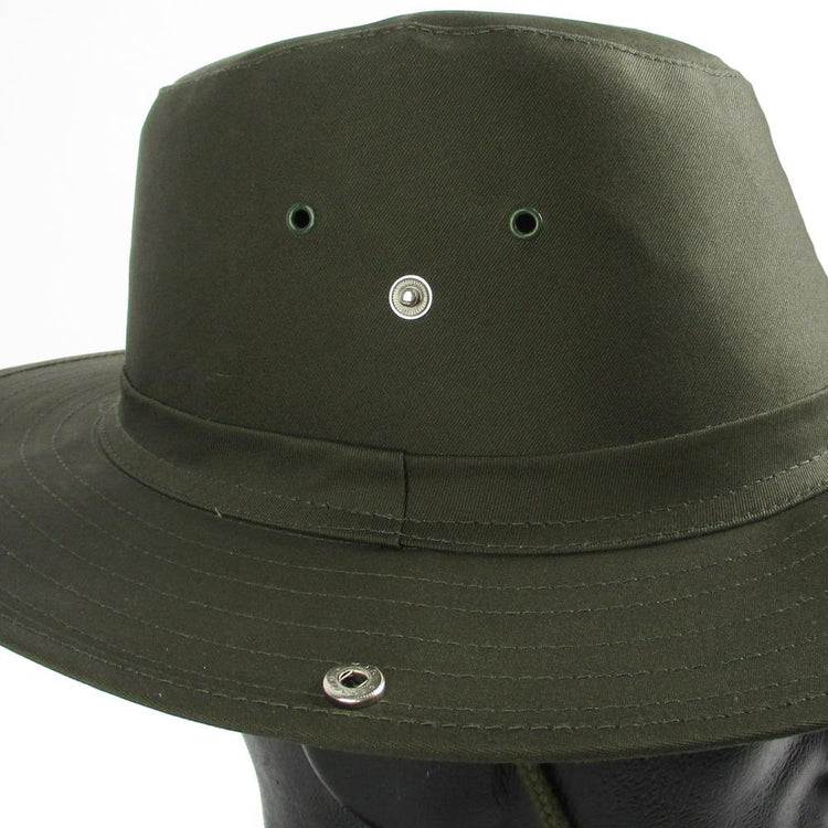 To fully protect yourself from the harmful sun rays you need a wide brim sun hat such as this one. This bush hat can be worn with one side up in a classic Australian and New Zealand slouch hat style. Secure the hat down with the push-button chin strap. These are perfect for fishing trips, summer camping and tramps, or riding a horse in to the sunset.