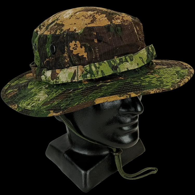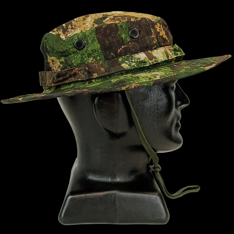 Mil-Tec has come out with its own new camouflage - WASP I Z3A! In short, it is intended for green Summer/Spring environments which it does superbly. Made from lightweight, rip-stop fabric paired with ventilation holes makes these hit a good balance of durability and breathability. These boonie hats are designed to keep the sun out of your eyes as well as protect your neck from the suns harsh rays. A nice addition is the foliage ring for adding extra local terrain to help better break your silhouette.