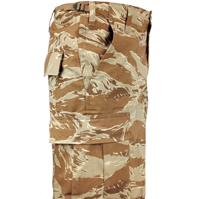 Tru-Spec have made this quality pair of shorts based on the proven BDU format. Generous sized cargo pockets, waist pull tabs, all made from robust rip-stop fabric. Best of all, they are complete in desert tiger stripe camouflage. Whether it be for the battlefield or kicking it on the beach, these shorts will do it all in style.