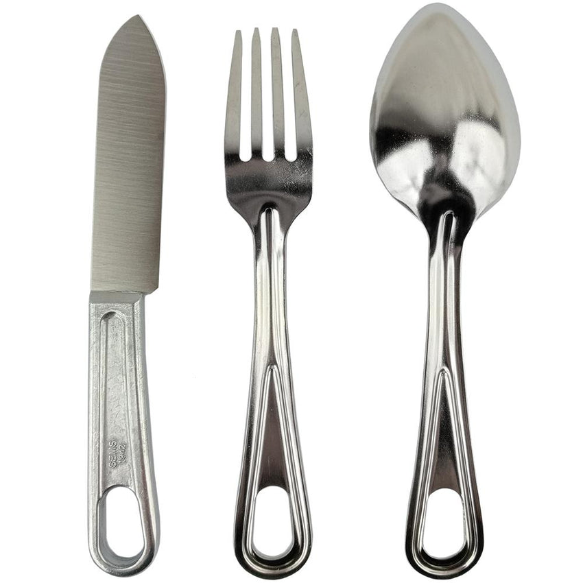 From socks, tooth brushes, underwear and forks - the US military had to equip its fighting men from head to toe. Unsurprisingly, a Army needs utensils to be fed! Issued together with a knife, spoon and fork. The originals were issued with leather covers (unfortunately no covers included) but alternatively you can loop these together with some string through the holes on the handles. Made with modern stainless steel.