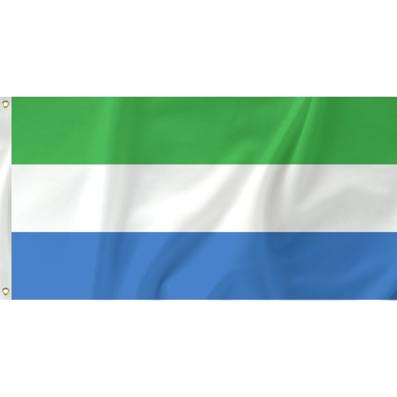 Sierra Leone adopted their current flag in 1961, at the same time of gaining independence from Britain. The green represents the country's natural resources, the white stands for unity and justice. The blue represents the natural harbour of the capital Freetown.
