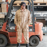 These beige overalls are issued to British army pilots. Filled with features and details that makes them both comfortable and handy. The resistant material is the perfect protection for pilots working conditions. Thigh mounted ID windows allow pilots to keep identification visible at all times. Cargo pockets provide space for extra gear and equipment. In "emergency situations", a back flap can be opened for the user's relief.