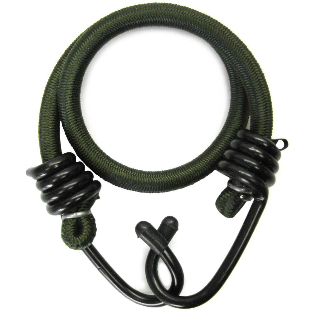 Bungee cords have many handy uses and keeping them around is always a good idea. Use them to secure objects in place or tying down items without needing knots. In this olive colour, it will be a great match for any similarly coloured equipment you may have, especially if you're going for stealth. These bungee cords are extra thick for absorbing shock and stretching out while retaining tension during heavy duty applications.