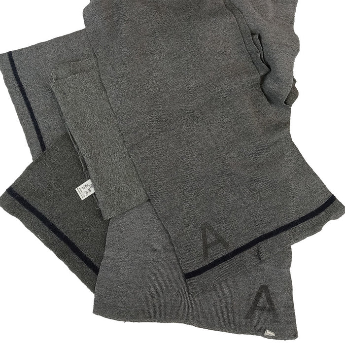 *Note * These scarves vary in design - some have ''A'' stamped, some have a navy stripe near the ends, some have both (see last picture for examples). These scarves also vary slightly in shade and in length.