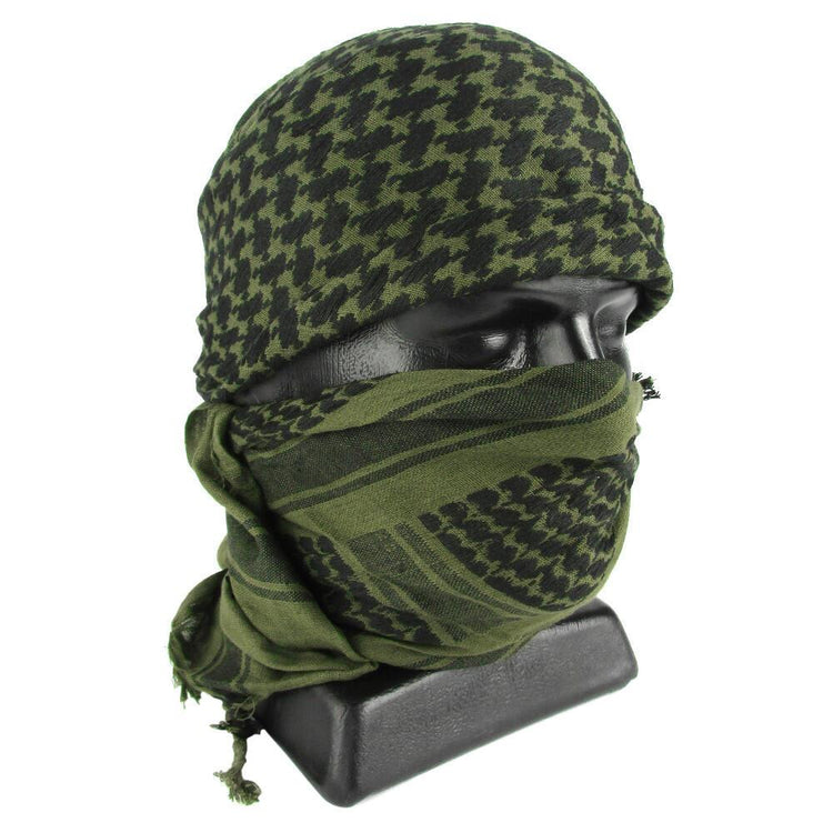 The shemagh is a large piece of material that is used to make a simple head wrap covering, that is used in almost every desert operation. Different colours and patterns represent groups and rankings of middle eastern troops or civilians. Essential for protecting eyes, nose, mouth and neck.