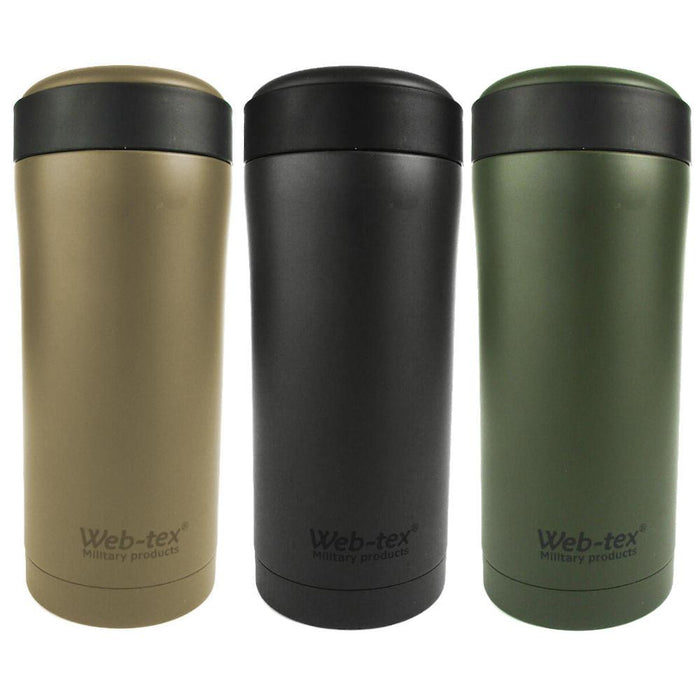 A Heavy Duty Insulated Stainless Steel Flask/Mug from Web-Tex specifically designed to fit comfortably inside a PLCE Ammo Pouch.