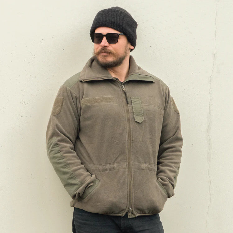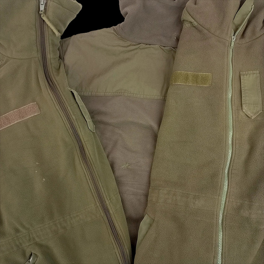 *Note* Some fleeces have dual zippered openings, some are single, and few zippers appear replaced. Some may have small repairs or marks to the fabric. Colours range from RAL7013, grey-green to olive.