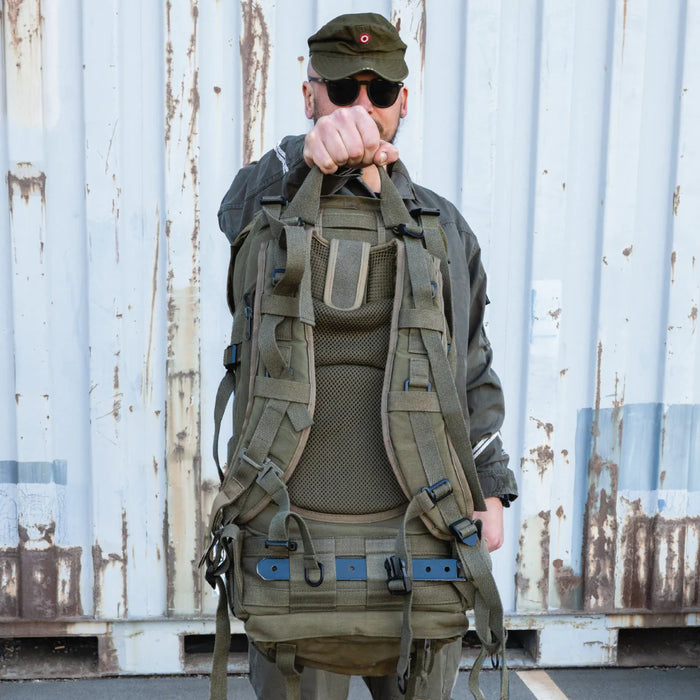 These packs from the Austrian Army were part of an effort to modernise the Austrian army's KAZ03 equipment. The intent with all the original parts was to have a pack to wear over and integrate with your webbing. If a soldier came under contact while on the march, he could quickly hit the release dropping his pack and take the fight to the enemy. Although some of these parts are missing, these still make a fantastic stand alone pack for the avid hunter or hiker.