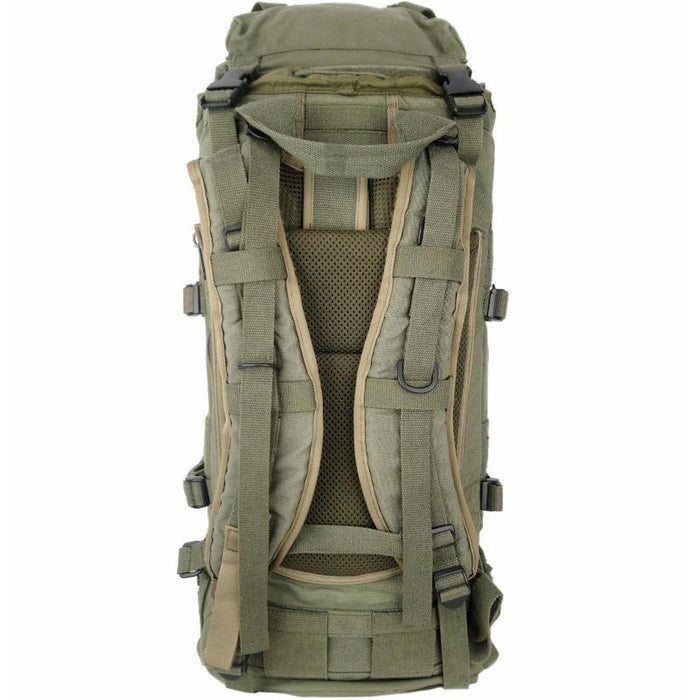 Made of hard wearing nylon and with an internal rubberized lining (somewhat perished in the latest batch), these will take all the knocks you can give it and keep its contents dry. The rubberised lining can be perishing & peeling after years in storage, it may be a bit sticky in there. Externally the pack is covered in cotton canvas loops that accept ALICE clip pouches if you need any added modules. The main compartment has a draw cord closure (which can help compress its contents down) as well as an extra sack sewn in around the opening. This sack can be sunken down into the main compartment and used as a divider for wet clothes or expanded upwards above the opening to increase the packs capacity. Another handy feature is the lid of the pack is fully removable. Both the top lid and bottom of the pack has a pair of pouches, handy for storing any quick access items such as a torch or bog roll when in a hurry! Behind the padded back area of the pack you can adjust the height/centre of gravity by raising or lowering the shoulder straps so you can gain maximum comfort according to your height and load.