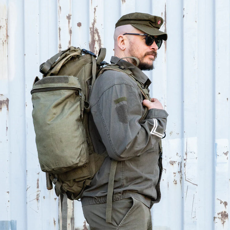 A genuine Austrian Army field cap, similar in design to that of a WWII German Luftwaffe hat. Despite its traditional Germanic appearance, these caps are dated from the mid 2000's. This is a warm weather cap, though they also came in a cold weather version with ear flaps. A red and white Austrian cockade sits on the front of the cap, paying homage to its traditional military form. A fine piece for a collector or casual outdoor use.