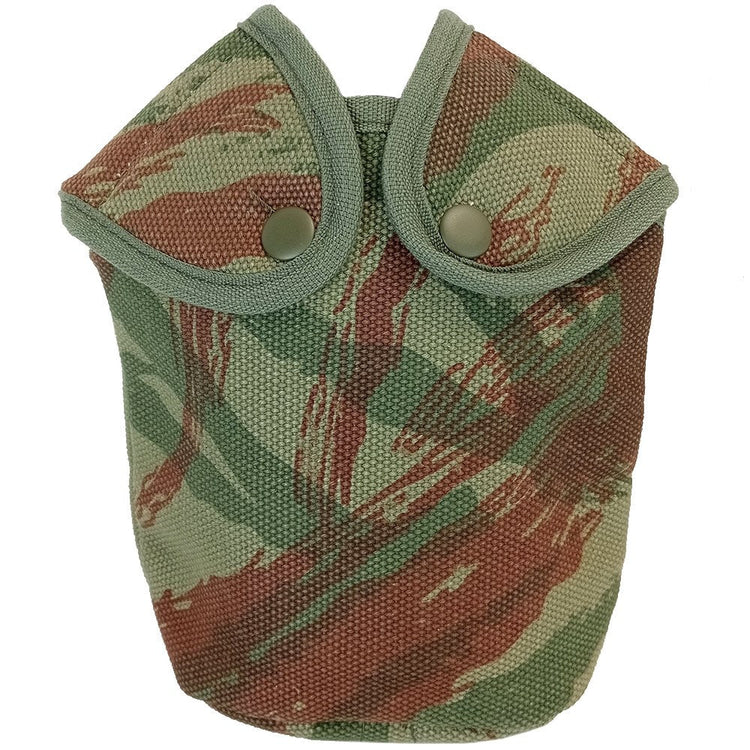 Benin's military relies heavily on imported gear - these canteen pouches come from France, a country that has historic ties to Benin. Its only suiting of course that the camouflage pattern covering these is in that of French 'lizard' style! Made from rugged cotton canvas & armed with a internal insulated nylon lining these will get your canteen cool in the desert. Dual snap domes keep your canteen secure and very generous belt loop at the rear insures this will attach to almost any belt system.