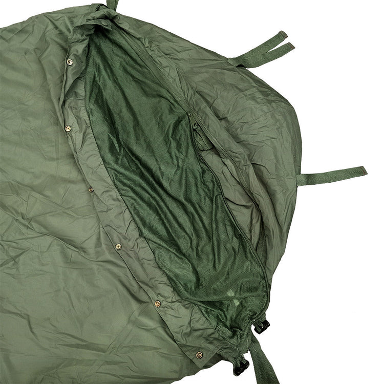 This lightweight fellow has a storable, zip mesh face covering - perfect for biting insects - which covers the opening. Inside are 2 mesh pockets to keep your bits close. Fabric ties integrate with outer sleeping bags when needed. Like all sleeping bags, adding a sleeping bag liner can boost warmth capabilities further while reducing the need for washing, prolonging the life of your sleeping setup. Complement with a British Army outer bivy bag for waterproofing and try out your system before taking into any serious conditions!
