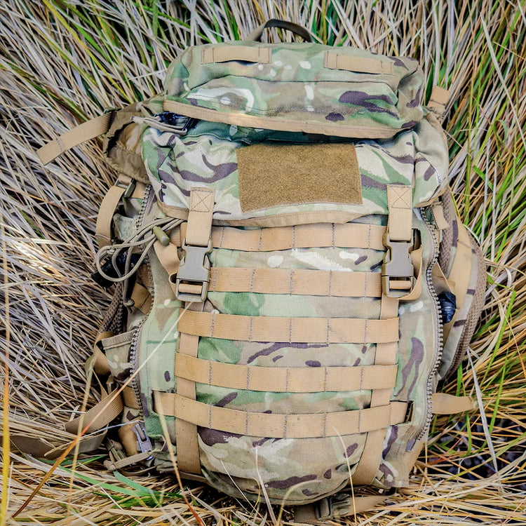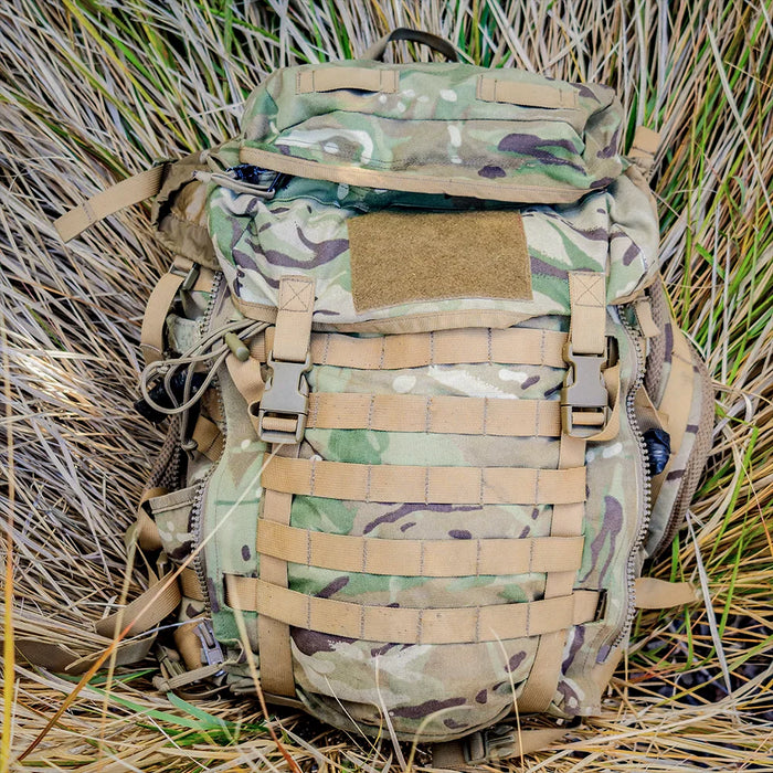 As Value Grade items these packs tend to have small holes, broken or missing clips and stains. They may also have other small damages but still with plenty of features to aid your treks. MOLLE to the front and sides allows you to customise your loadout with extra gear or pouches. And if you're one of those lucky ducks with the MTP side pouches, chuck those on for even more storage and compartmentilisation. The nylon construction and sturdy build means you can biff these through all the brambles you want. Handy lid and open side pockets, stowage collars and compression straps are a nice touch on such a heavy duty piece of gear. A wicked, medium sized bit of kit. Grab one if you are lugging about a decent (but not a huge) amount of gear and handy with a bit of DIY.