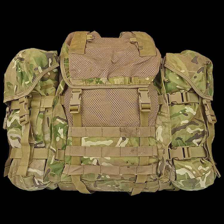 *Note* The mesh to top and front is unlined and would require a pack cover to protect goods. To make a day pack with the optional side pouches, you will need a Karrimor SF yoke. Many of these packs would benefit from a good wash.