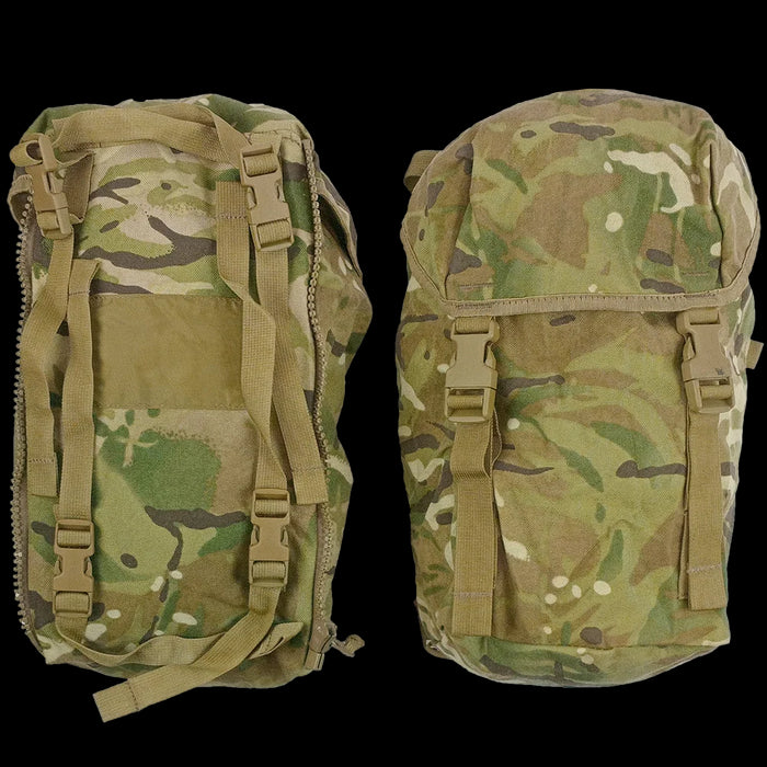 Like British Army PLCE packs, these have the option for more or less storage with zip detachable side pouches. The pack already has built in smaller side pockets and can be covered by closing the zips, also reducing the width of the pack. You can purchase this pack with the additional side pouches or without side pouches.