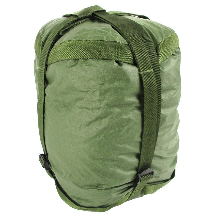 This cram sack features adjustable straps connected to a top lid. These straps allow the pack to adjust to different sizes of sleeping bags. This cram sack is made for heavier, cold weather sleeping bags, but can easily fit smaller bags in too.