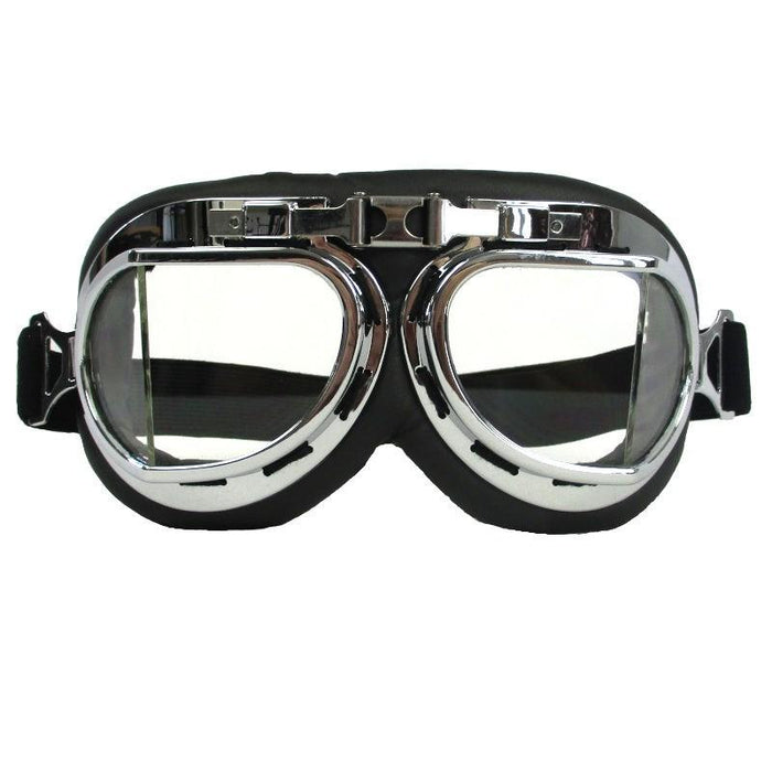 After some eye-wear to fly your steam powered aircraft? Then these chrome flying goggles might just be for you! These are a reproduction of the goggles worn by the likes of Tigermoth pilots and Triumph bikers. With there retro look these are perfect for fancy dress, cosplay or some good ol' fashioned biking!