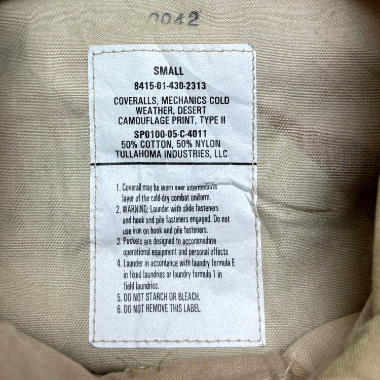 US Army cold weather mechanics coveralls in 3 colour desert camouflage.