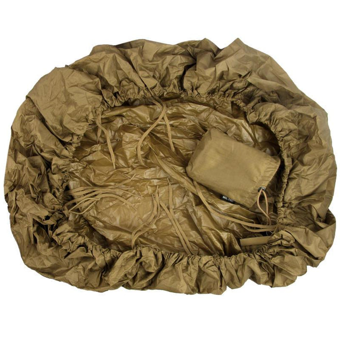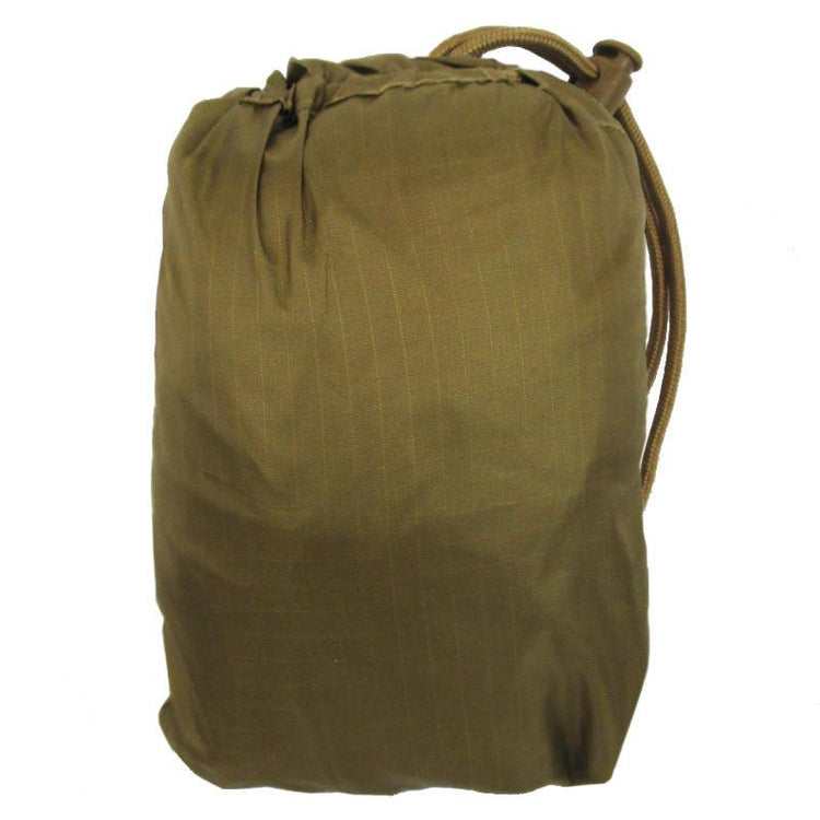 These brand new covers are made from a lightweight and durable Polyester material. They have a Polyurethane coating that helps waterproof the cover. To use simply unfurl the cover from its own self attached cram sack, rap it around your pack and pull the draw cord tight. Around the edges of the cover you will find multiple chords that can be tied onto different points on your pack to make sure its secure.