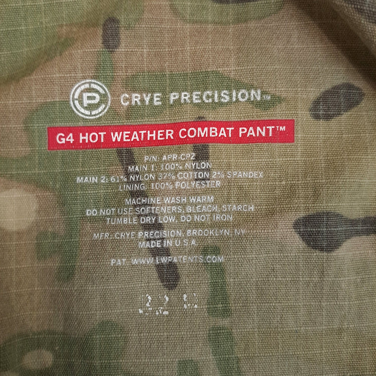 Ex-British Royal Marines issue Crye Precision G4 hot weather combat pants in multicam. Unlike the NSPA models, this still carries the external Crye branding.