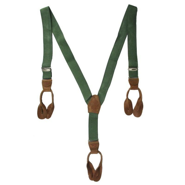 Here we have some authentic Cold War era Czech Army suspenders. Made from elastic and a tough artificial leather, these Y-shape suspenders attach onto buttoned pants. The front straps are fully adjustable - These will not only keep your trousers up but do it in style!