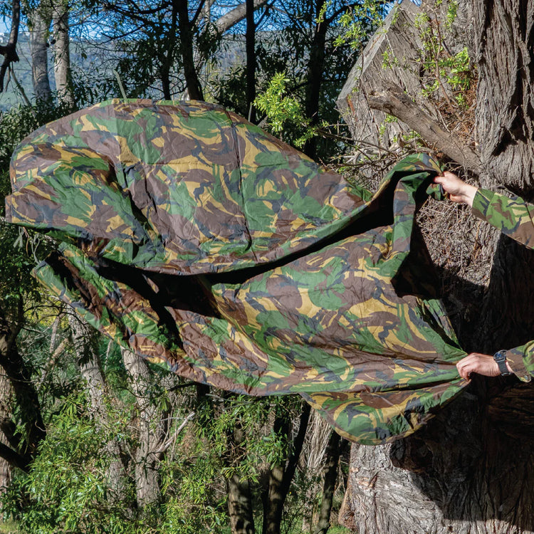 Considered by troops to be one of their most versatile pieces of equipment; the poncho liner can be used as a make-shift sleeping bag, shelter, blanket, camo hide or ground sheet. These DPM camo woobies are made from polyester with a synthetic filling. Twelve ties around the corners and sides allow you to attach it through the eyelets of a poncho or tie it to a tree for shelter. Grab yourself a woobie for a home emergency kit, camping or hiking.