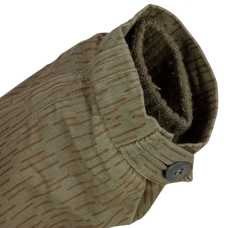 Snug in strichtarn, these jackets are what East German soldiers were issued for winter. With a smooth polyester lining and padded polyamide layer inside, these will keep you warm. The cuffs are elasticated so they can trap any body heat generated. An extra add on feature is the collar - these have internal buttons so you can attach a big fur collar much like their Soviet overlords style (fur collar not included). The outside is made from a rugged cotton exterior and complete in the iconic strichtarn/strichmuster camouflage.