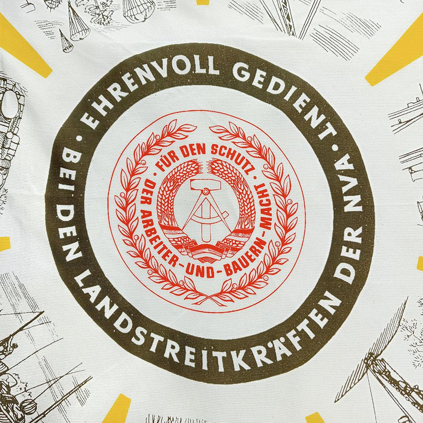 The scarf has a series of images showing different portions of the military from tanks to CRBN crews along with the DDR coat of arms front and centre. The doily included has decorative embroidery surrounding the outside along with the coat of arms and 'Nationale Volksarmee' in the middle. For some it seems like just yesterday still, but we are already decades on and these will only become more collectible over time as a Cold War era relic.