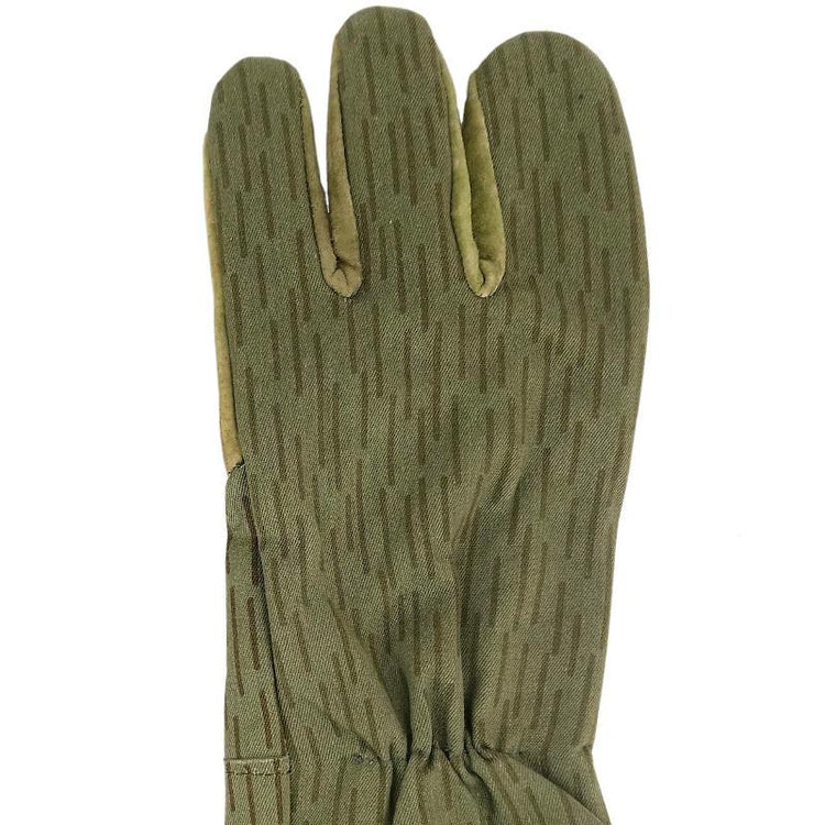 Strichmuster (or commonly known as rain pattern) came out in the 1960’s and it should come as no surprise they covered a glove in it! Just like East Germany, these gloves are a bit confused. The bottom two fingers are joined leaving the rest separate to operate triggers in the cold. Although made with a thick cotton canvas, they only have a thin polyester internal lining for warmth. On the upside though, they have thick suede grips with a thick internal vinyl lining ideal for changing hot barrels or tackling rough obstacles.