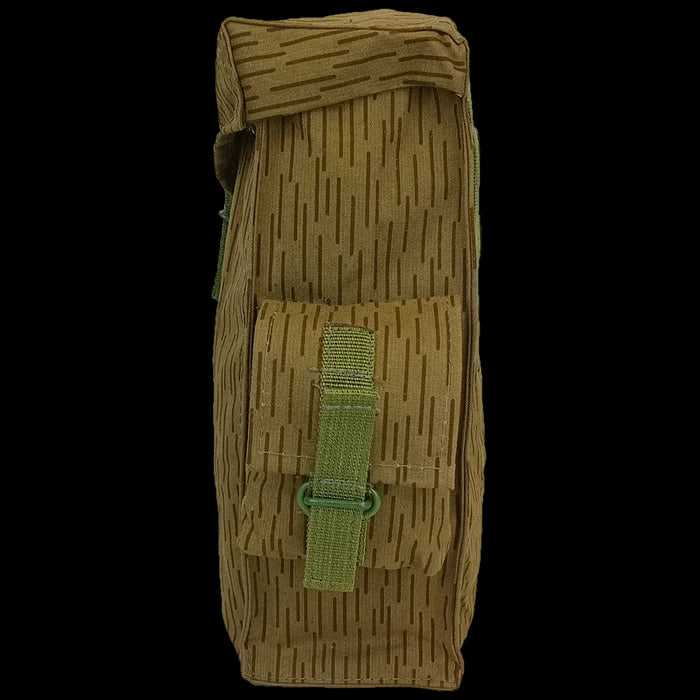 Made from canvas with a rubberised backing, these have a small pocket on the outside and 3 internal partitions made with fabric, for storing your gas mask bits. These divisions are made from the same outer fabric, so they are non rigid - very flexible (and probably easily removed if you feel like it). The bag has belt loops and wire to attach to your UTV webbing belt. Like the older strichtarn bags (with the grey webbing system), these would make great side pouches on bikes or shoulder bags with a bit of DIY for straps! Some may scoff at modifying these items, as these are fairly collectable, from an extinct country.