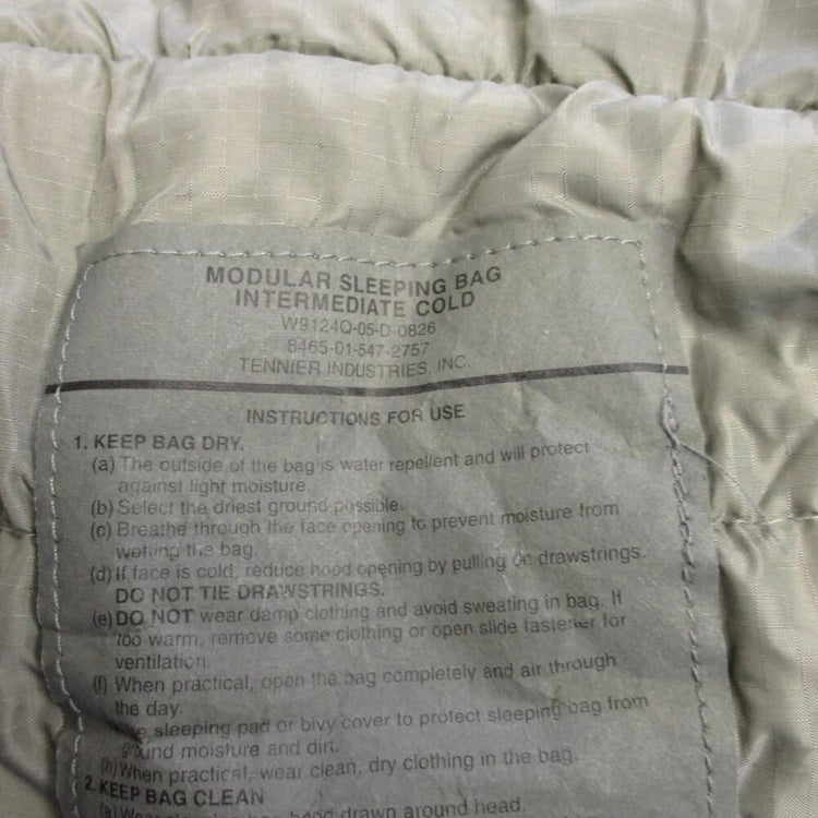 The ECWS (Extreme Cold Weather System) is a modular sleep system from the U.S. Military. The system is made up of 3 items - the intermediate sleeping bag, patrol bag, and bivy bag. When all 3 bags are used together they are rated for use at -40 degrees Celsius. This is just the Intermediate sleeping bag which can be used on its own, rated at -23 degrees Celsius. It is worth noting that these ratings are based on what temperature you could survive in for a certain amount of time (4 hours), not what temperature would be comfortable.