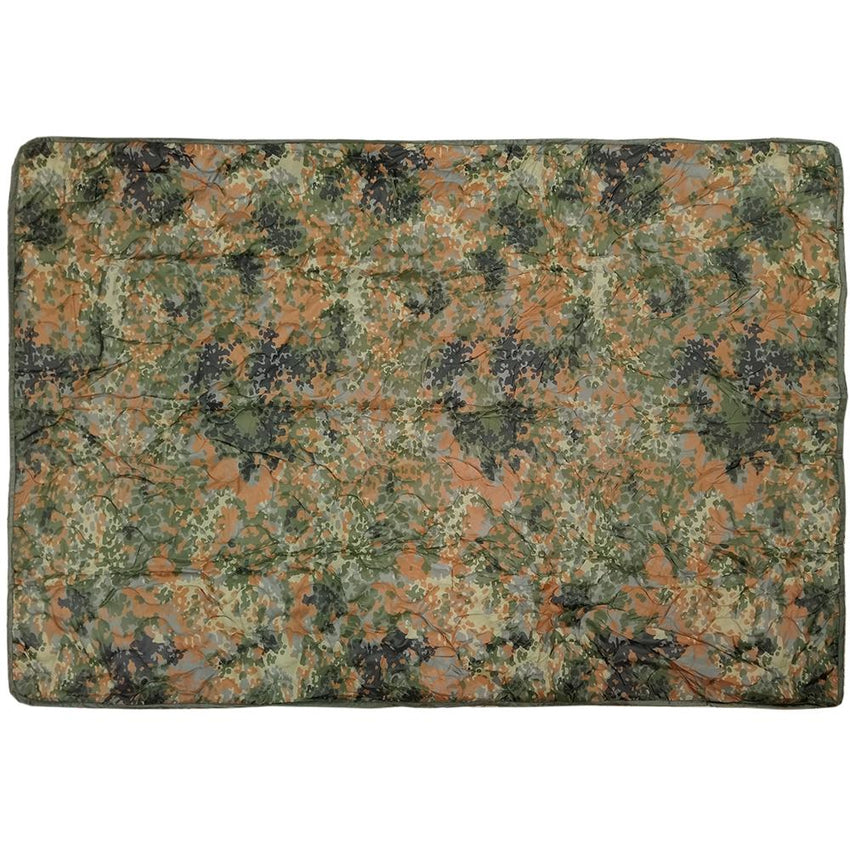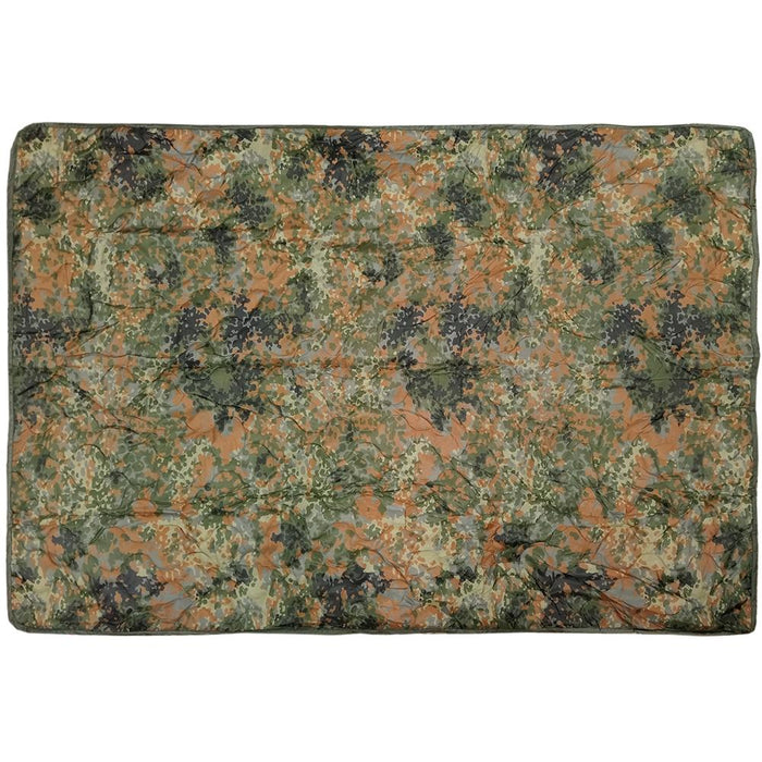 A poncho liner or 'woobie' is a much loved piece of kit. Poncho liners are water resistant and warm quilted blankets that can be tied into a poncho or used on their own. These flecktarn camo woobies are made from polyester with a synthetic filling.