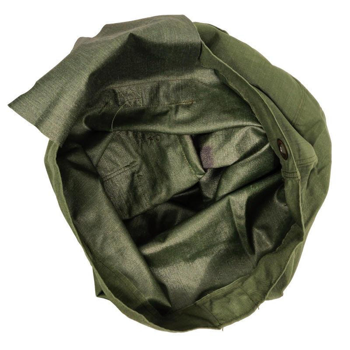 This is a seriously heavy duty duffel bag. Genuine US army gear built tough for military life. Its shoulder straps and carrying handle make it easy to lug around the huge amount of gear you can stuff in this mean green pack. The opening can be secured shut by threading the metal loop through the eyelets and attaching back to the clasp, an innovative and easy to access design.