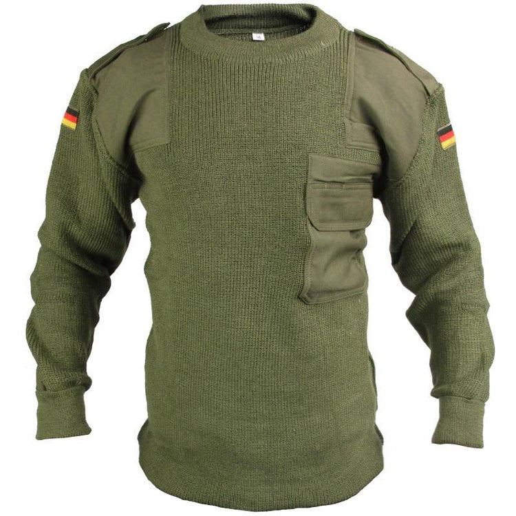 It's hard to find a better sweater than this German army outerwear. Quite possibly the benchmark for jerseys and the like. Made from high quality wool/poly blend material. This is the first version and was popular enough to be made into a blue version to be used as the German's navy and air force uniform.
